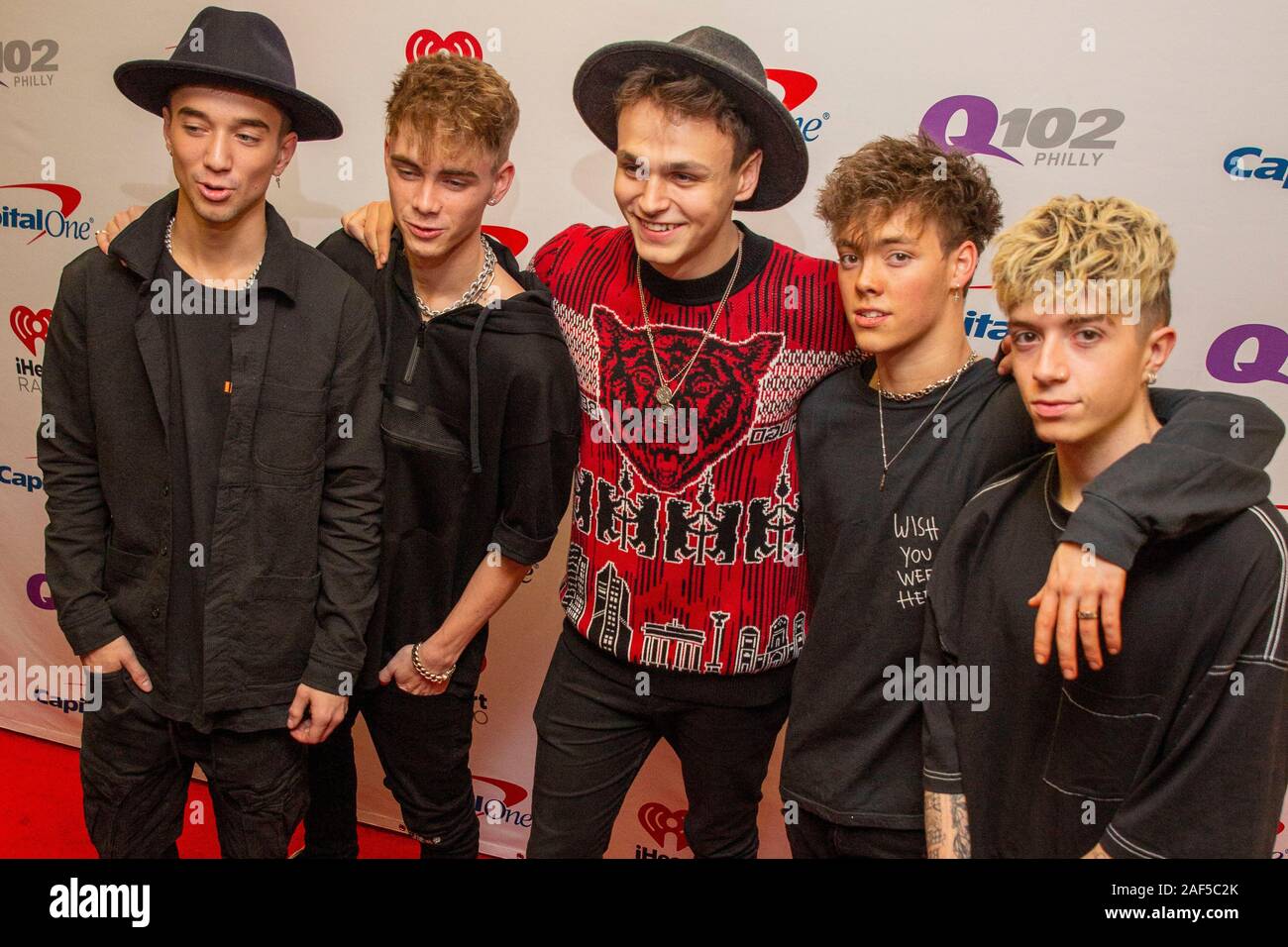 L R Daniel Seavey Corbyn Besson Jonah Marais Zach Herron And Jack Avery Of Why Don T We Arrives At Q102 S Iheartradio Jingle Ball 2019 At The Wells Fargo Center On December 11 2019